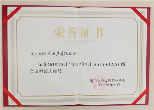 【喜报】 翔鹭国际大酒店于日前荣获由厦门市会议展览业协会授予的5A(AAAAA)级会议型饭店称号,酒店将以此为契机,持之以恒,从细节入手,以荣誉为动力,不断完善设施设备,提升服务品质。 自2015年5月开始,厦门市会议展览业协会根据《厦门市会议型饭店评选认定工作实施方案》在全市饭店系统实施创建会议型饭店评定工作,41家酒店报名参与了此次评定活动。经过酒店自报材料、考察组实地核查和专家综合评审(15位专家参评,扣除最高分与最低分,得出平均分),32家饭店达到了申报等级条件,其中10家达到5A级。